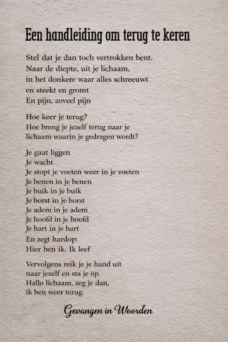Er is een andere manier. En die begint niet met anders denken. Die begint met anders doen. Met een begeleider die zelf precies weet hoe het voelt en je stap voor stap laat ontdekken dat jij de controle terug kunt krijgen.