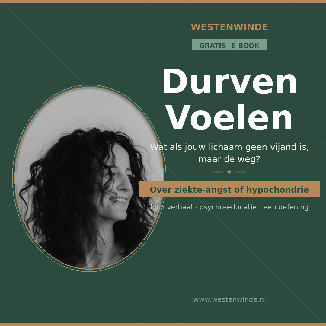Dat is niet omdat jij zwak bent. Het is omdat de angst niet in je hoofd zit, maar in je lichaam. En je lichaam overtuig je niet met logica. In dit gratis e-book neem ik je mee in mijn eigen verhaal met gezondheidsangst, leg ik uit waarom denken en analyseren je maar zelden duurzaam helpen, en geef ik je een eerste oefening mee die je vandaag al kunt doen.